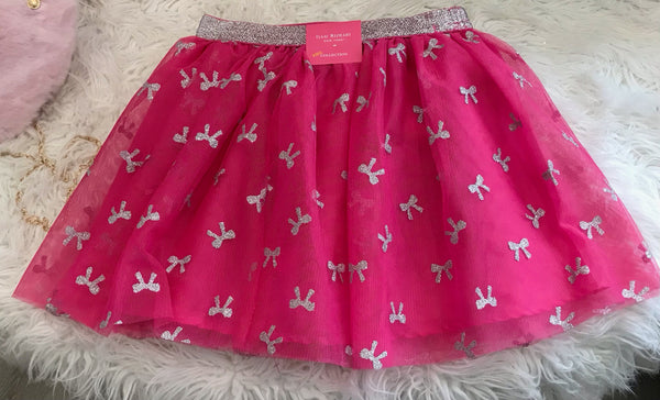 This is an adorable little Girls Tutu in Pink with a sparkly silver elastic waistband! The addition of lots of sparkly silver bows sprinkled all over makes this a must have for every little ballerina or princess dress up!